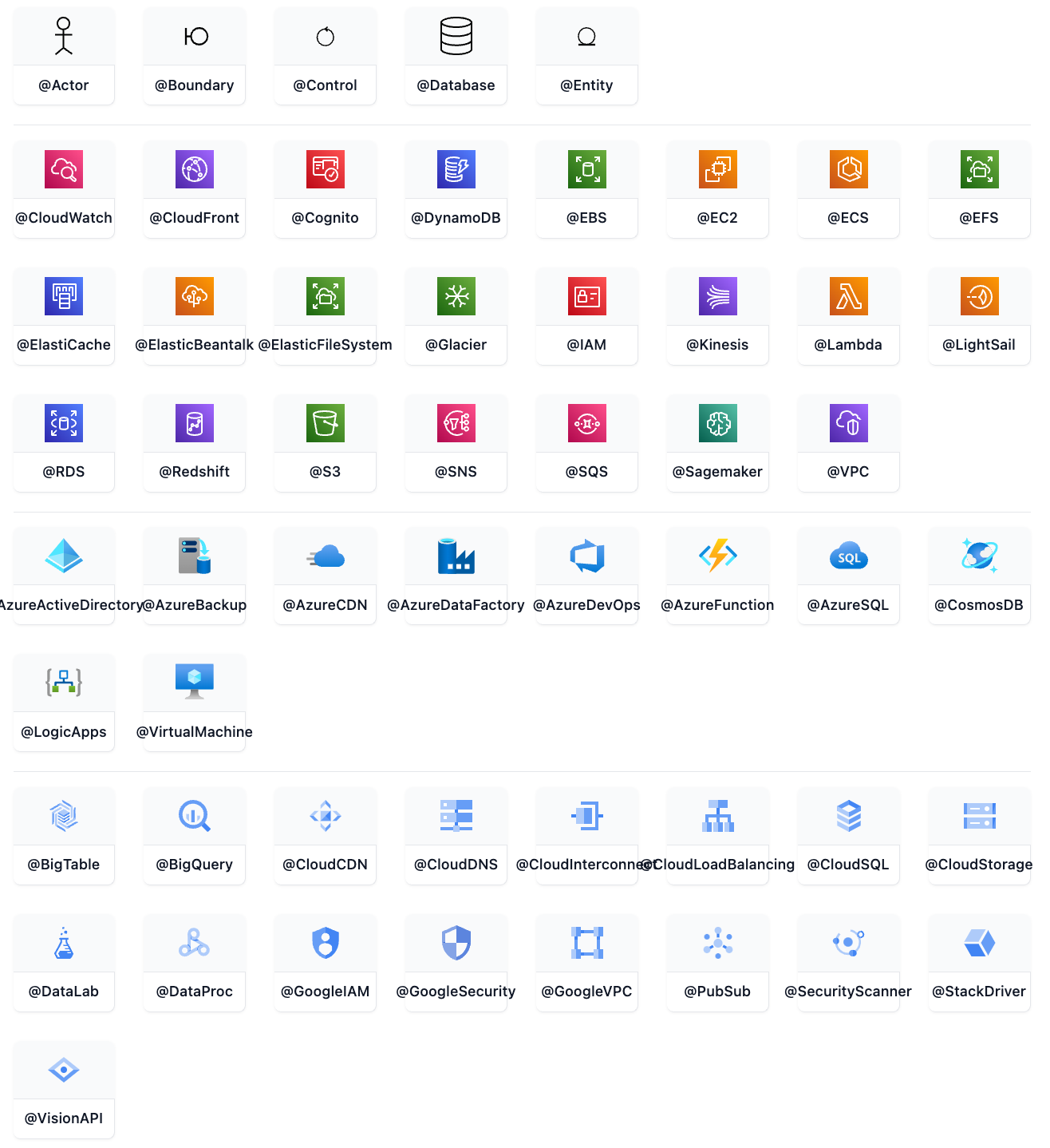 If you specifically want to use symbols instead of just rectangles with text you can do so by using the annotator syntax to declare participants as per below.